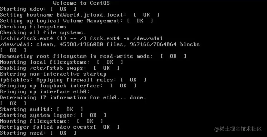 退出单用户模式后重启云主机,系统在加载完nscd服务后没有加载agentboot服务,继续完成启动过程。