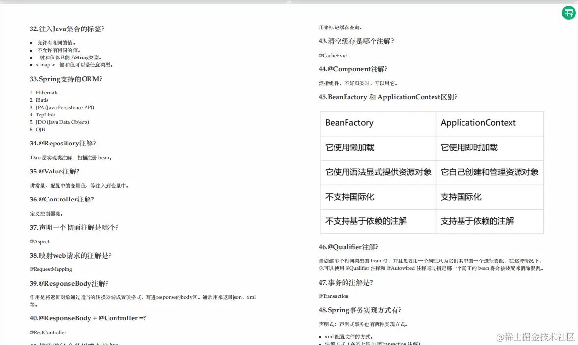这份Java面试突击宝典,包含基础、多线程、JVM、Mysql、Spring、SpringBoot、Mybatis、SpringCloud等十几种技术栈。非常全面,足够应付面试官了。由于文章篇幅限制的原因,以下展示的为部分内容。对资料感兴趣的小伙伴们获取方式见文章末尾~
