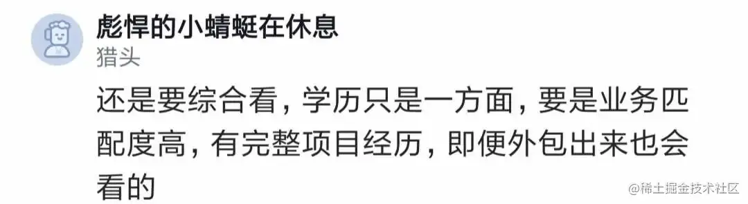 有人说,还是要综合看,学历只是一方面,如果业务匹配度高,有完整的项目经历,即使外包出身也会看。