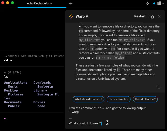 最近一段时间,AI领域如同雨后春笋般开始猛烈生长,processon,sentry,一些日常使用的工具都在积极接入AI,那么正好借着AI的风头,今天给大家推荐一款非常不错的智能终端 warp(目前仅限macOS,Windows or Linux还需要等等),如果你还在用传统终端,那么你更应该看过来。 毫不夸张的说,我在看完了它的7分钟演示视频,并在体验半小时后,毫不犹豫卸载了我之前使用了3年的终端 iterm2 ,多犹豫一秒我觉得都是对它的不尊重,那么跟传统终端相比有多好用呢,替我细细道来。