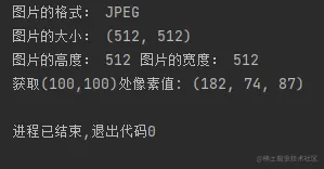 print('获取(100,100)处像素值:',img.getpixel((100,100)))