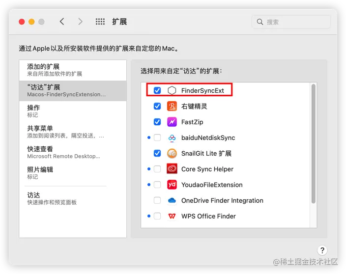 以上这些问题通过Finder Sync扩展都可以解决,你可以通过它来为你的右键菜单增加"新建txt"、"解压rar"、"当前目录打开终端"等功能项,你也可以把命令行使用的svn、git包装成图形界面工具,使用右键菜单和工具栏来灵活使用它。