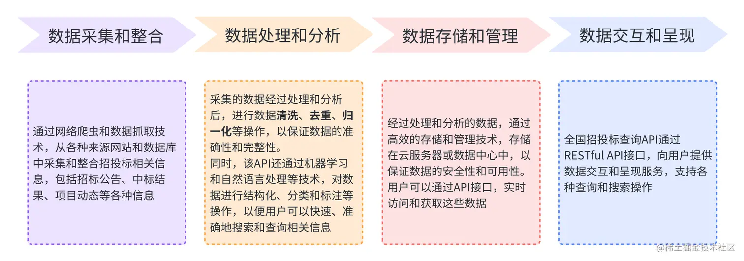 全国招投标查询 API 的出现,正是为了满足这一需求。该 API 基于大数据技术,整合了全国各地的招投标信息资源,提供了丰富的招投标信息查询服务,涵盖招标信息查询、中标信息查询等功能满足用户多方面的信息需求。