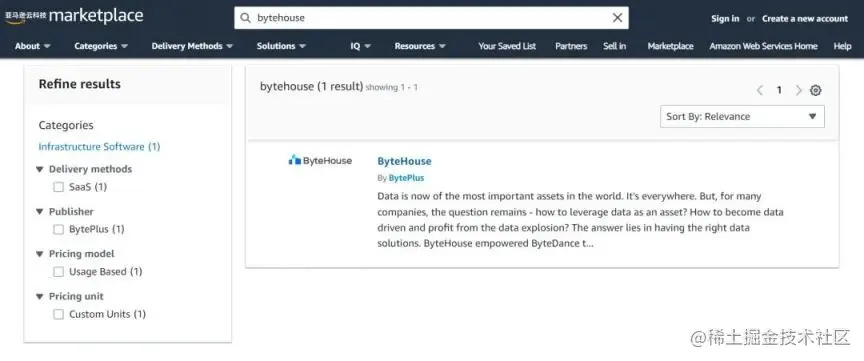 ByteHouse 目前已在亚马逊云科技 Marketplace 完成上架,客户只需要在亚马逊云科技 Marketplace 页面搜索 ByteHouse 就可以进入产品的控制台页面。