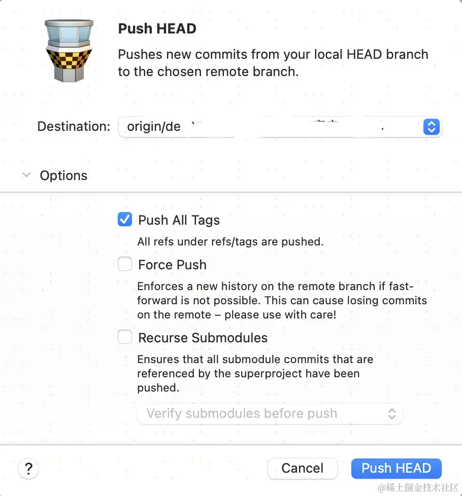 **注意:**推送的时候会把当前分支的代码推送到远程,所以要注意当前是什么分支。