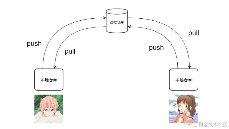 远程仓库 pull —> 工作区 add —> 暂存区 commit —> Git版本库 push —> 远程仓库,一旦提交后,如果你又没有对工作区做任何修改,那么工作区就是“干净”的。