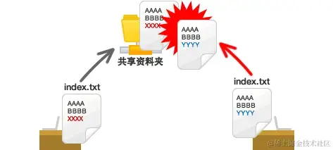 在多人同时开发一个项目时,如果两个人修改了同一个文件的同一个地方,就会发生冲突,冲突需要人为解决。
