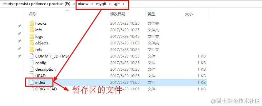 一般存放在".git目录下" 下的index文件(.git/index)中,所以我们把暂存区有时也叫作索引(index)。(如果没有index,提交一次就有了)