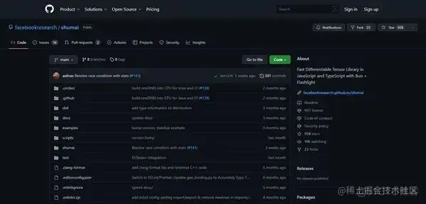 📍基本信息:Shumai是一个个开源、可微分、高性能、类型安全的TypeScript和JavaScript的张量库,为软件工程师和研究人员等使用 bun + flashlight 构建,使工程师和研究人员能够利用其网络连接和差异化功能。通过结合强大的组合器和手电筒,用户可以轻松地构建和优化他们的机器学习模型。Shumai的开源性质允许协作开发和定制,使其成为寻求灵活和高效张量库的理想解决方案。