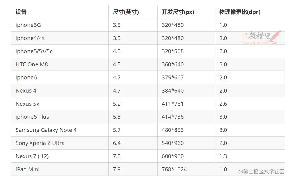常见移动端屏幕尺寸: