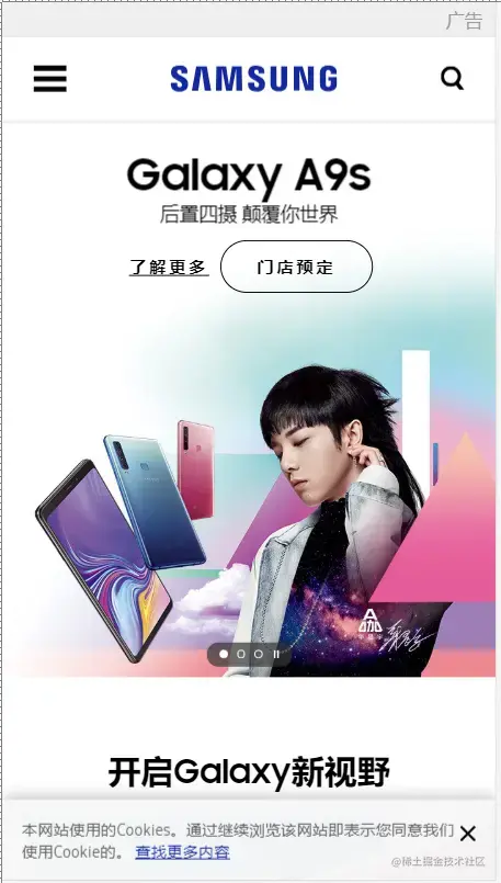 三星电子官网: www.samsung.com/cn/ ,通过判断屏幕宽度来改变样式,以适应不同终端。