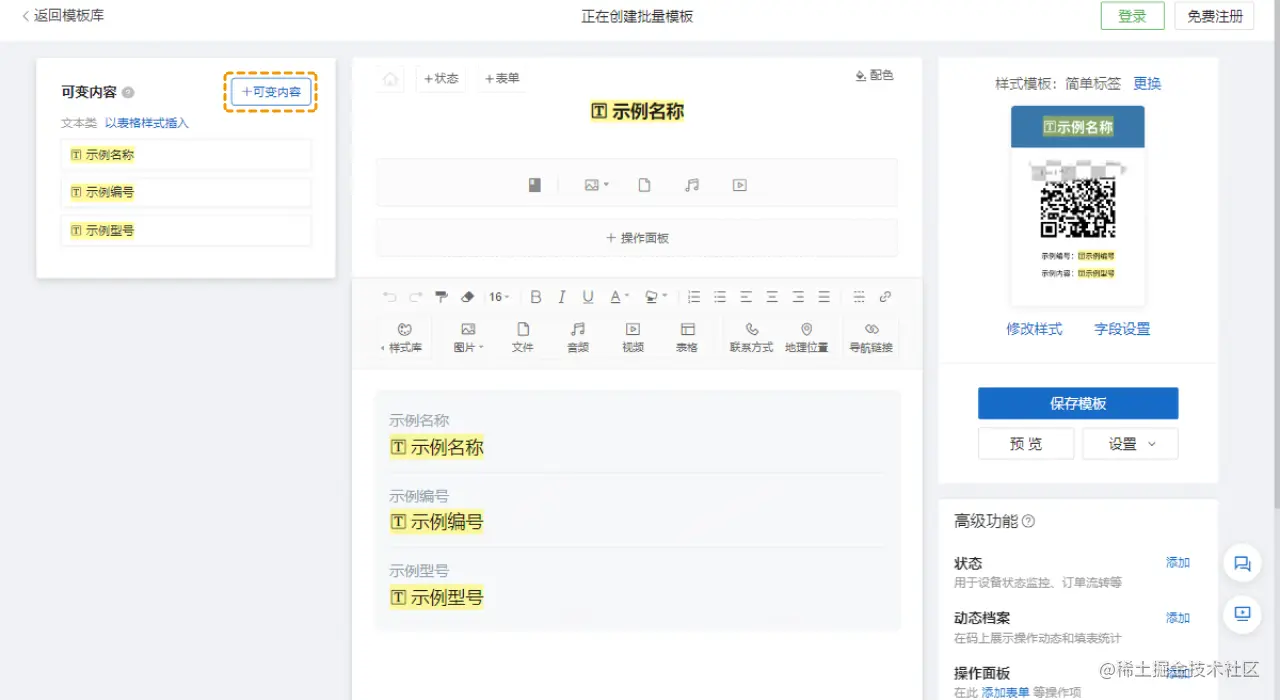 制作批量模板的流程与制作单个二维码类似,只是在可变内容的添加和设置上稍有差异。