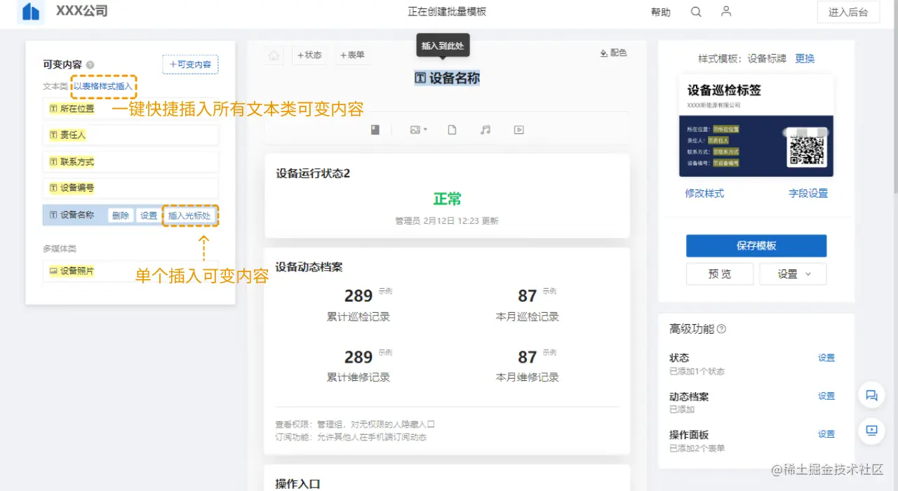 模板的样式,关联的表单状态等所有内容均可进行修改,修改后所有子码都将批量更新,且模板可重复使用,让后期的成本大幅降低。