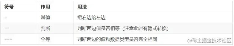 == 与 === 的区别:== 只进行值的比较,=== 值和类型同时相等,则相等,如下: