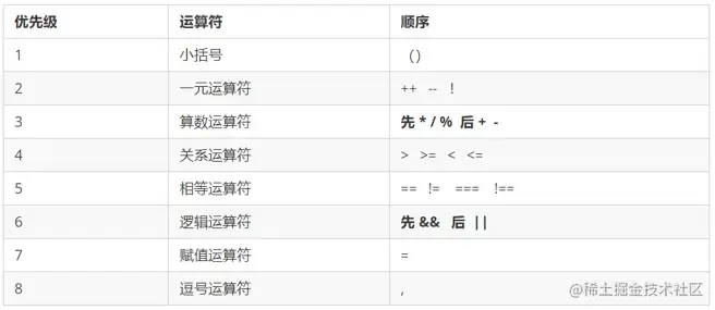 - 一元运算符里面的逻辑非优先级很高