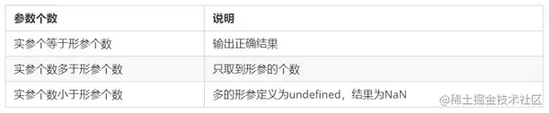 - 形参个数可以和实参个数不匹配,不会报错,这也是和其他语言不一样的地方,但是结果不可预计,我们尽量要匹配