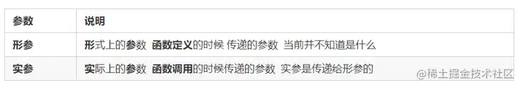 - 声明函数的时候,函数名括号里面的是形参,形参的默认值为 undefined