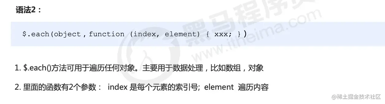 // 如果针对于同一类元素做不同操作,需要用到遍历元素(类似for,但是比for强大)