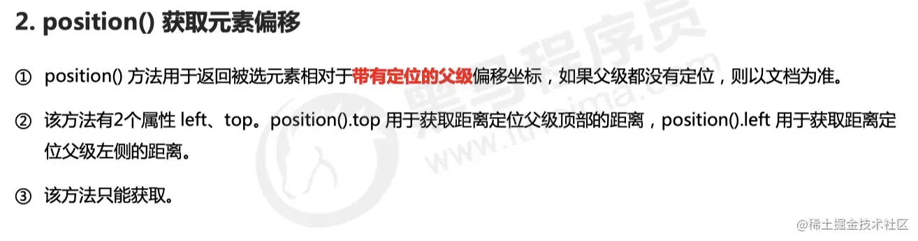 // 2. 获取距离带有定位父级位置(偏移) position 如果没有带有定位的父级,则以文档为准