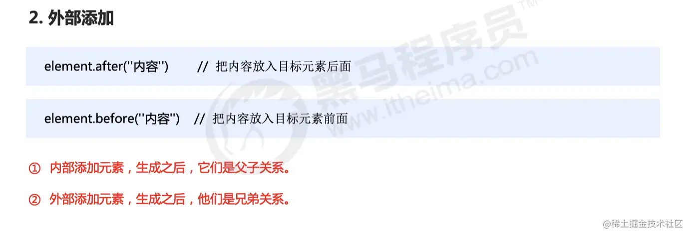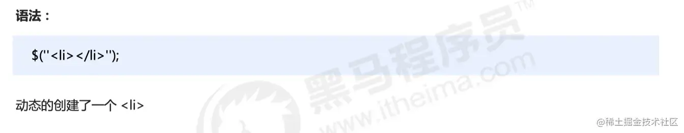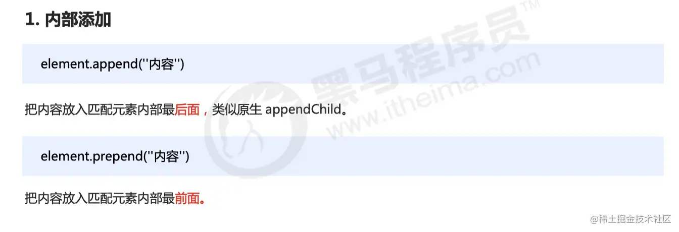 // $("ul").append(li); 内部添加并且放到内容的最后面