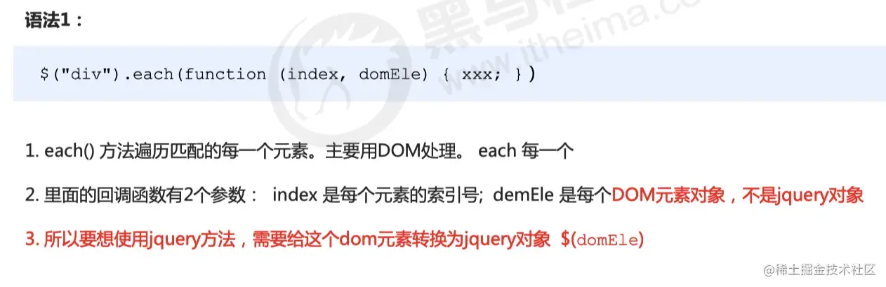 jQuery 隐式迭代是对同一类元素做了同样的操作。 如果想要给同一类元素做不同操作,就需要用到遍历。