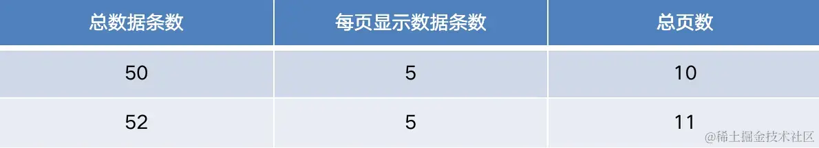 总页数:Math.ceil(总数据条数 / 每页显示数据条数)