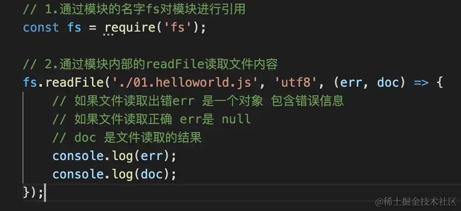 fs.reaFile('文件路径/文件名称',['文件编码'], callback); //带中括号代表这个参数是可选的
