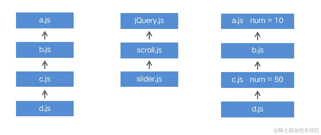 - 如果模块后缀省略,先找同名JS文件再找同名JS文件夹