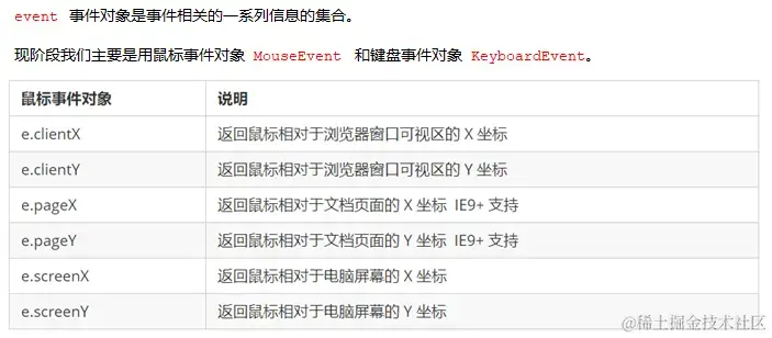// 3. screen 鼠标在电脑屏幕的x和y坐标