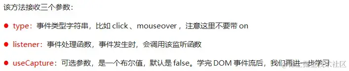 event:事件名 function:事件触发的函数 useCapture:是否在捕获阶段执行