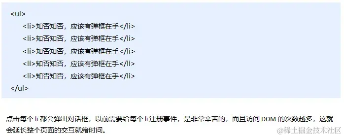 // (1) 里面的事件类型是字符串 必定加引号 而且不带on