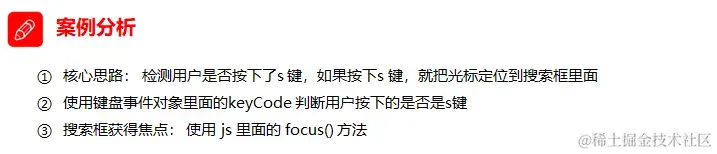 当我们按下 s 键,光标就定位到搜索框(文本框获得焦点)。