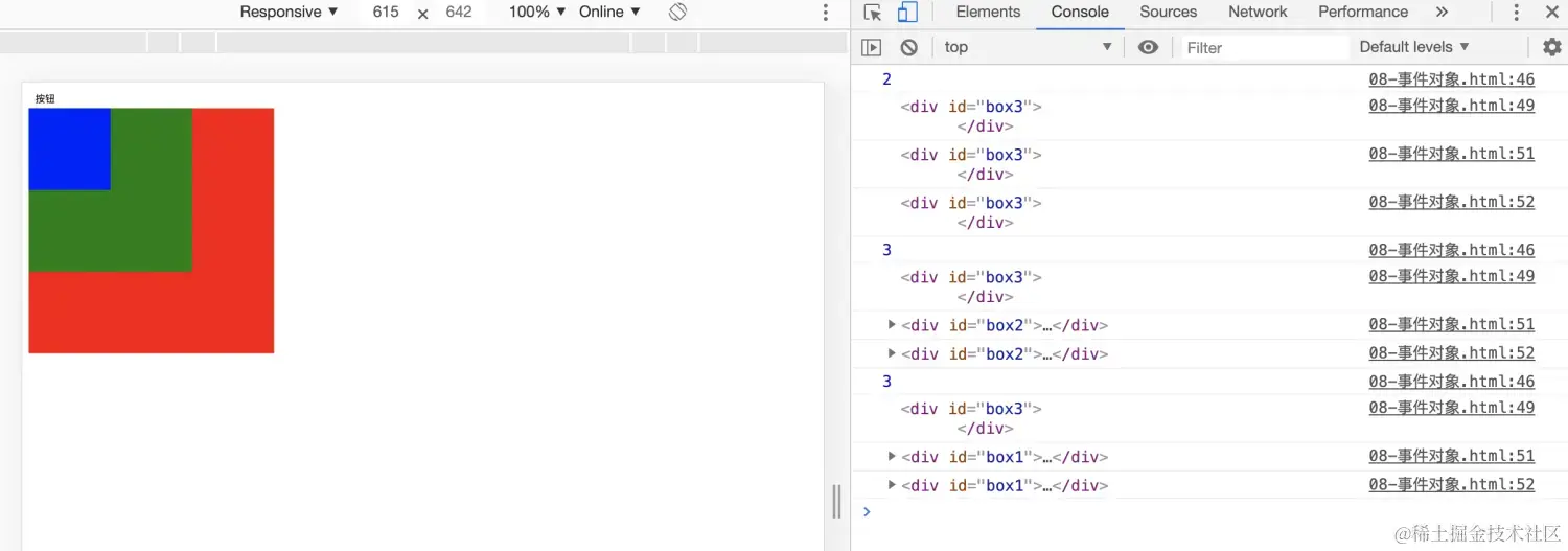 html中的标签都是相互嵌套的,我们可以将元素想象成一个盒子装一个盒子,document是最外面的大盒子。 当你单击一个div时,同时你也单击了div的父元素,甚至整个页面。