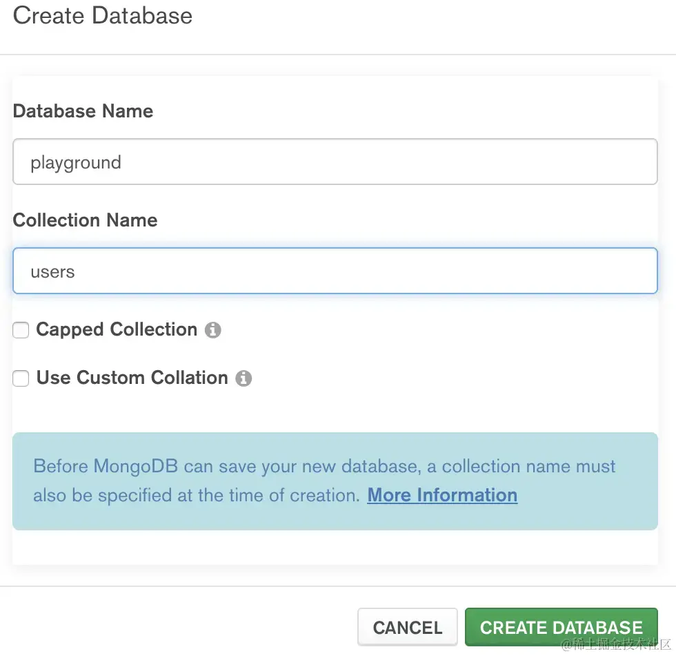// 数据库连接 playground是数据库名称,如果没有会自动创建