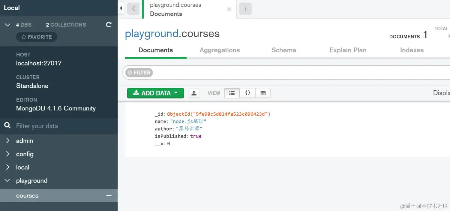 // 2. 创建集合并应用规则 'Course'是集合名称,首字母要大写,实际上,在数据库中这个集合名称叫courses