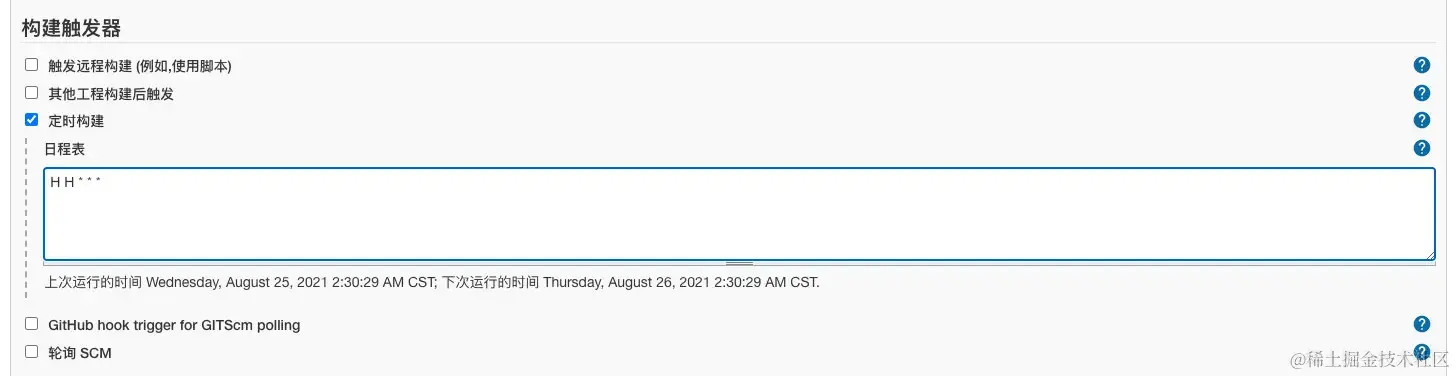 #每两小时构建一次OR每两小时检查一次远程代码分支,有更新则构建