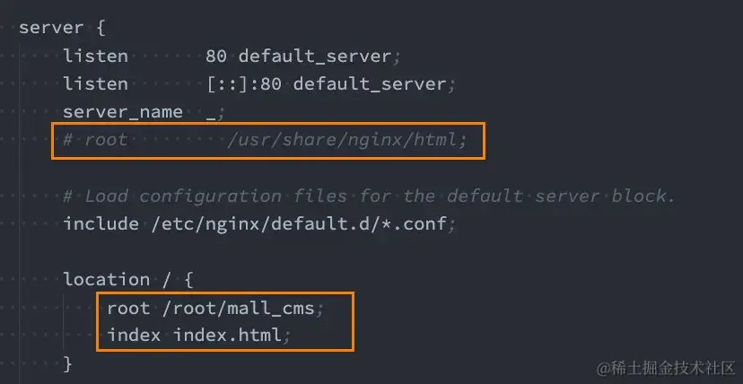 - 将打包的dist文件夹内容移动到mall_cms文件夹;
