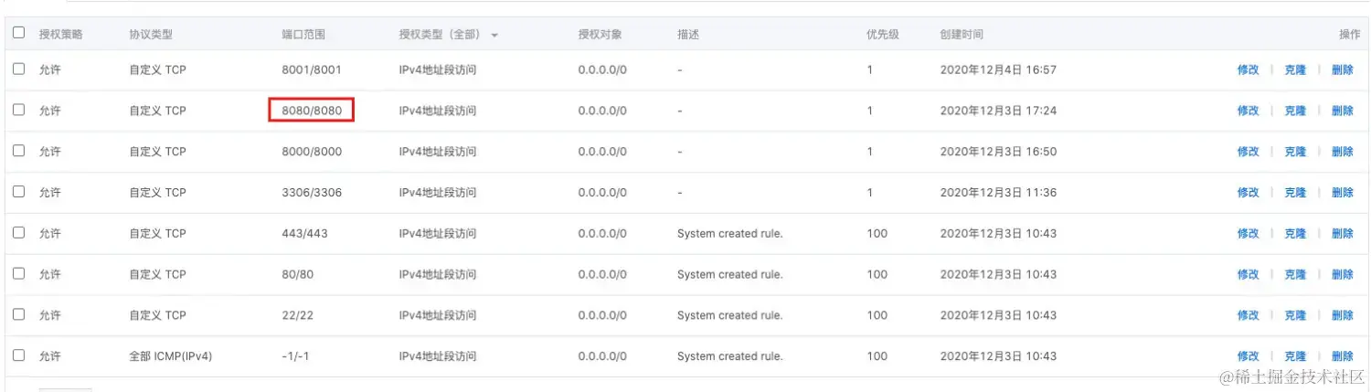 Jenkins默认使用8080端口提供服务,所以需要加入到安全组中: