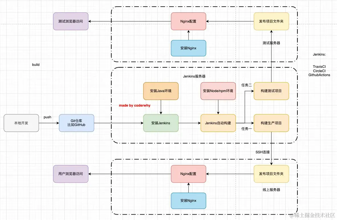 - CD是两种翻译:Continuous Delivery(持续交付)或Continuous Deployment(持续部署);