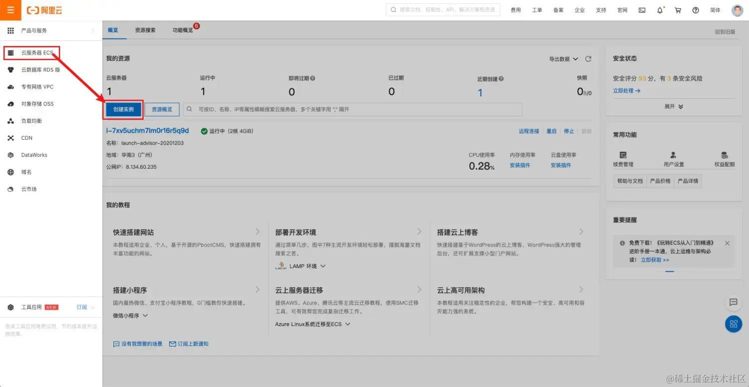 购买云服务器其实是购买一个实例。