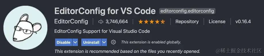 如果想VSCode读取这个文件,需要安装一个插件:EditorConfig for VS Code。