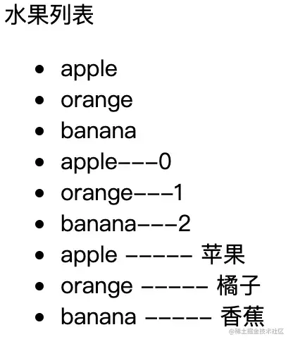 <div v-for='(v,k,i) in obj'>{{v + '---' + k + '---' + i}}</div>