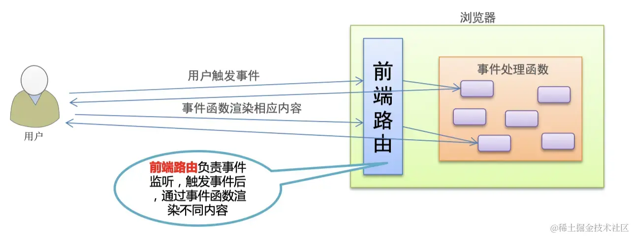 概念:根据不同的用户事件,显示不同的页面内容 本质:用户事件与事件处理函数之间的对应关系