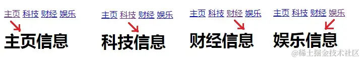 点击每个超链接之后,会进行相应的内容切换,如下: