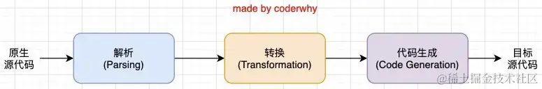 Babel是如何做到将我们的一段代码(ES6、TypeScript、React)转成另外一段代码(ES5)的呢? 从一种源代码(原生语言)转换成另一种源代码(目标语言),这是什么的工作呢?就是编译器,事实上我们可以将babel看成就是一个编译器。Babel编译器的作用就是将我们的源代码,转换成浏览器可以直接识别的另外一段源代码。