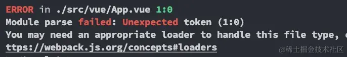 我们对代码打包会报错,因为我们需要合适的Loader来处理.vue文件: