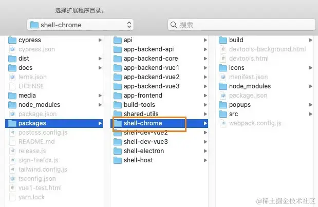 - 终端执行 yarn run build 打包,打包好的文件在shell-chrome文件夹里面