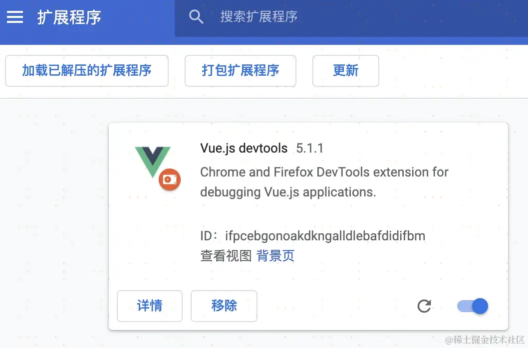 // ④ 点击浏览器右上 ···-更过工具-扩展程序,打开Chrome扩展页面