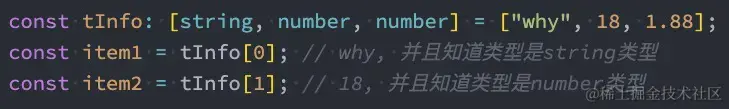 - 元组中每个元素都有自己特性的类型,根据索引值获取到的值可以确定对应的类型。