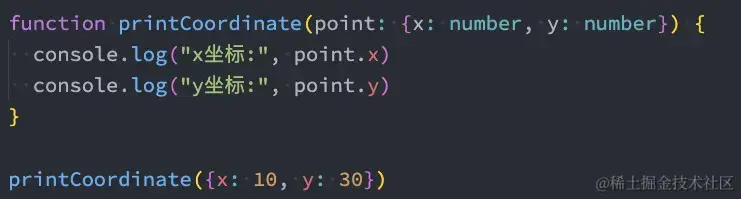 如果我们希望限定一个函数接受的参数是一个对象,这个时候要如何限定呢?我们可以使用对象类型。